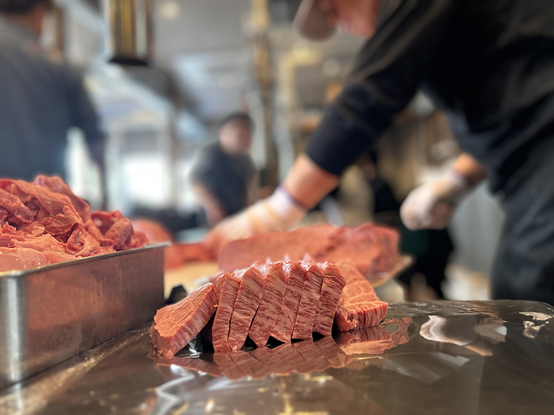 オリーブの葉を飼料として育った雌牛A5ランク・BMS12、記念すべき初の一頭目をスタッフで食す会を開催しました。 「老若男女、誰もが健康的に美味しいものを召し上がっていただける」ことを根底に、飼料にオリーブの葉を用いた雌牛「千葉オリーブ牛」の開... -